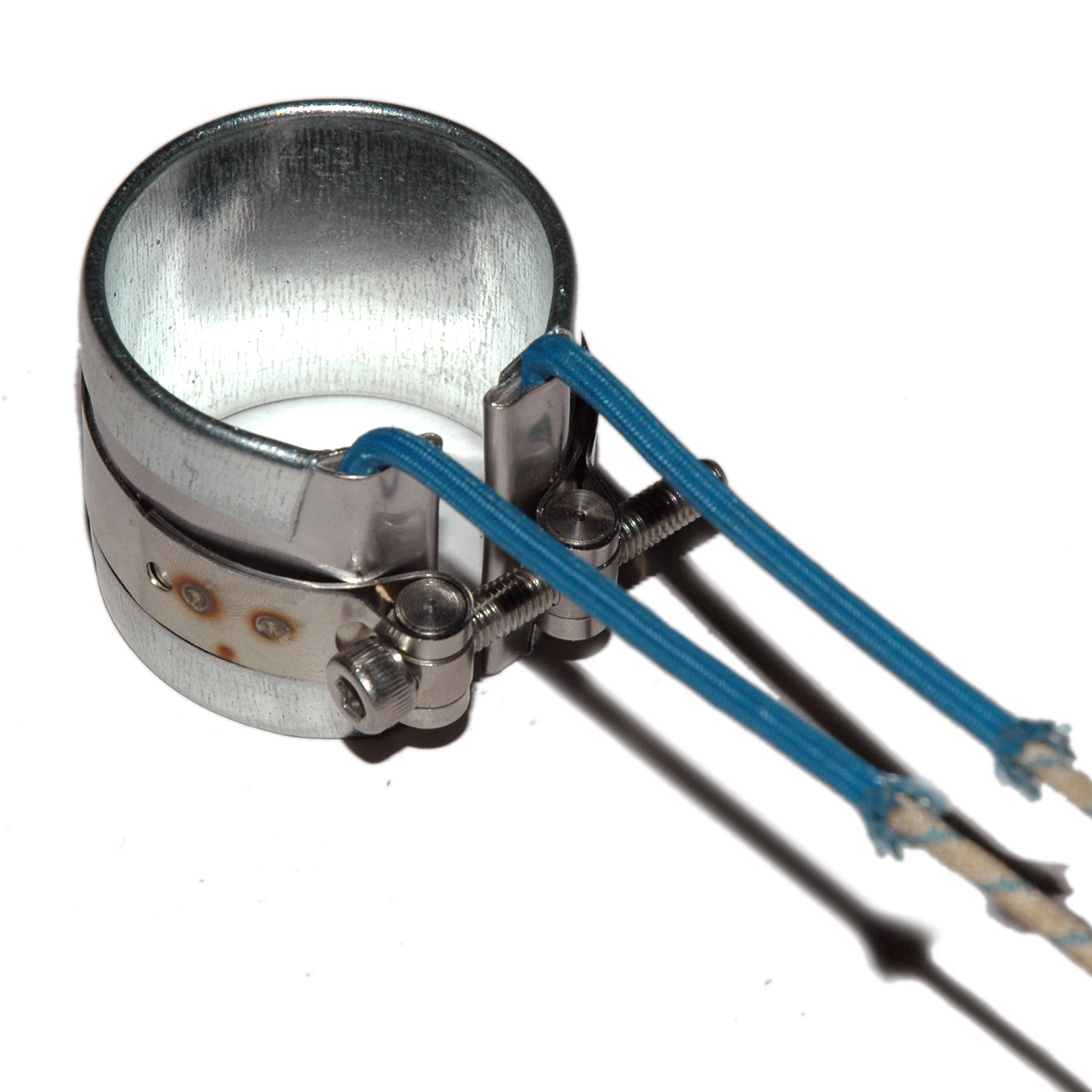 Heater Band, 1-1/2″ ID x 1-1/2″ Wide, Mica, 120 Volt, 250 Watt, V-Type, 12″ Flex Leads, Strap Lock-up.