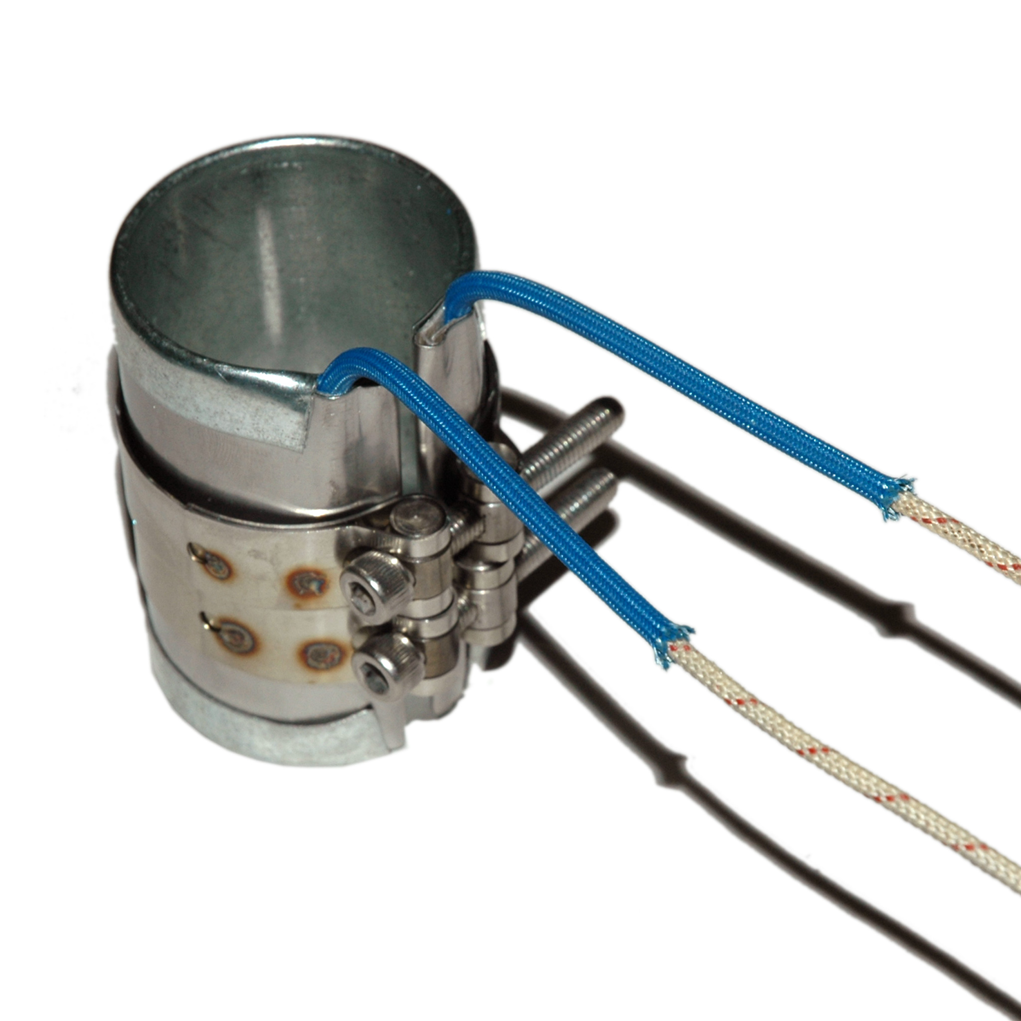 Heater Band, 1-1/2″ ID x 2-1/2″ Wide, Mica, 240 Volt, 350 Watt, V-Type, 12″ Flex Leads, Strap Lock-up.