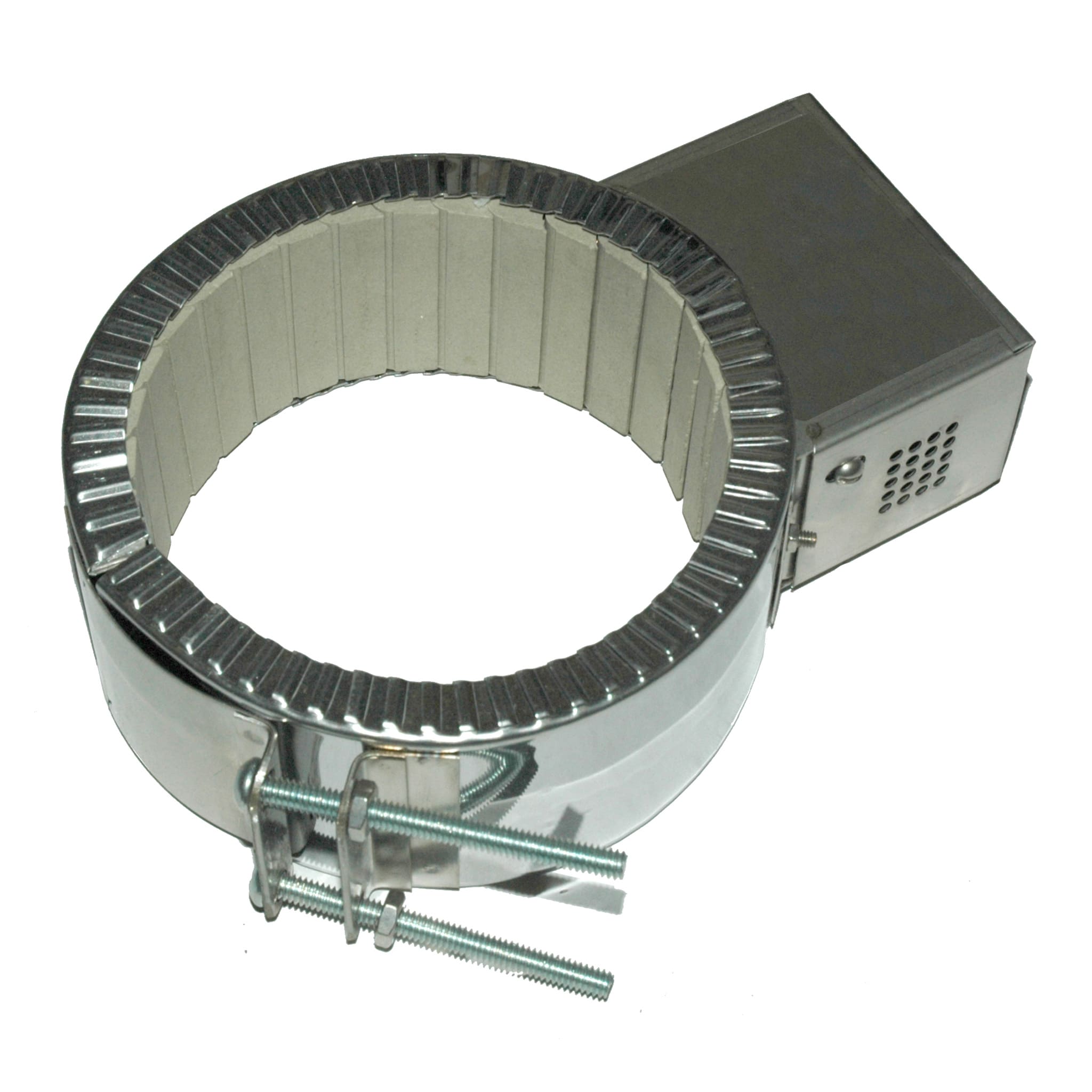Heater Band, 5 To 5-1/2″ ID X 2-1/2″ Wide, 240/480 Volts, 1150 Watts, Ceramic Material, 1 Pc, 3 Terminal Posts, Flange Lock-Up.