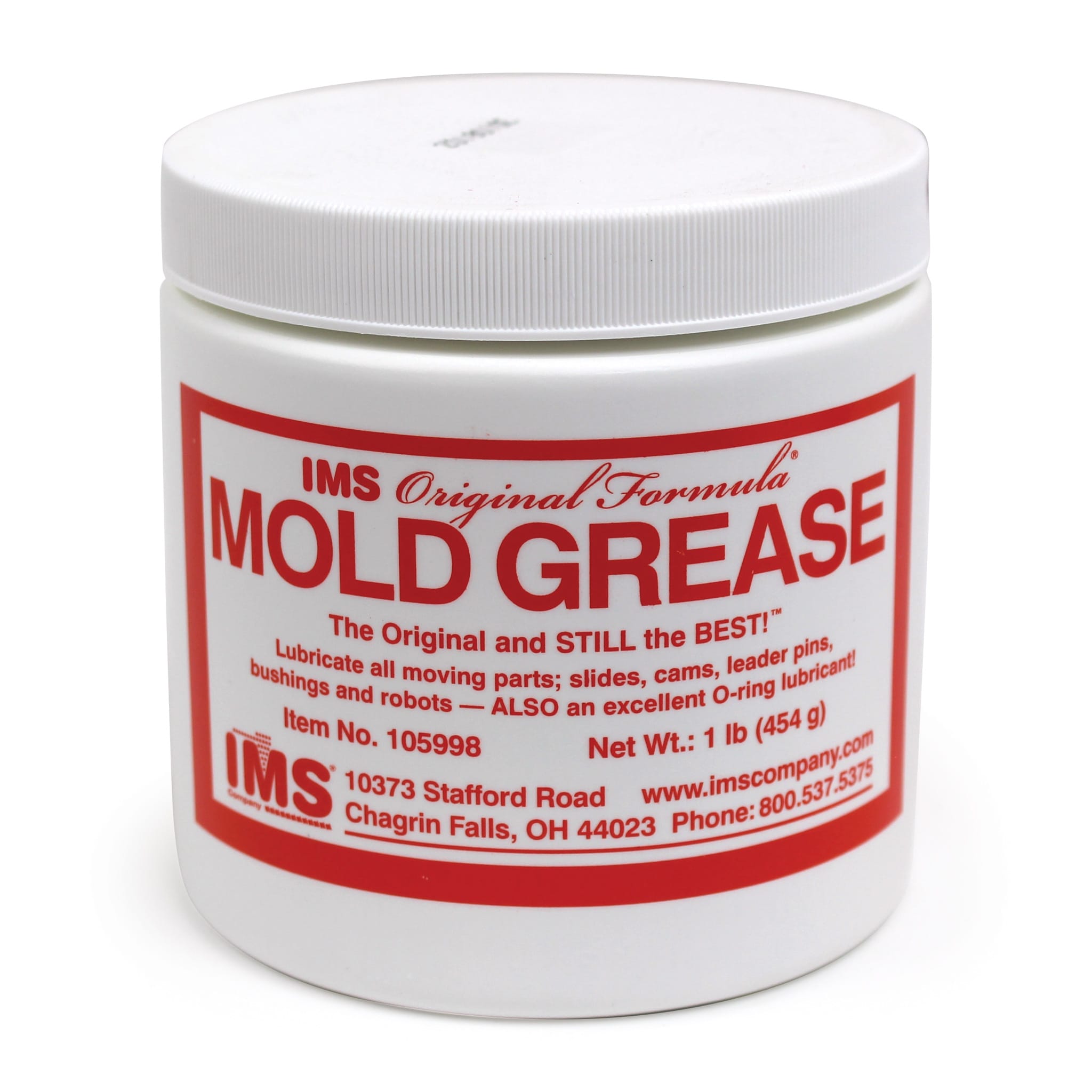 Mold Grease, Original Formula. 16-oz Jar Net Wt. ~NSF Listed — Nonfood Components H2 ~Forms Adherent Yet Slippery Film ~Won’t Wipe Off Through Tight Bushings ~Superior Lubricity From -22 To + 500 Deg ~Waterproof