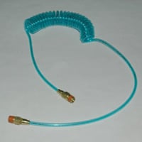 Air Hose, Polyurethane, Self-Coiling, 1/2″ ID Hose, 10′ Long With 1/2″ NPT Straight Male Fittings. (1) Rigid & (1) Swivel Fitting.