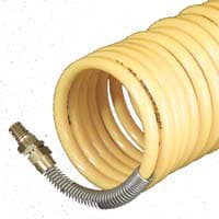 Air Hose, Nylon, Self-Coiling, 1/2″ ID Hose 12′ Long With 1/2″ NPT Straight Swivel Male Fittings. ~Spring Guards At Both Ends ~Color: Yellow