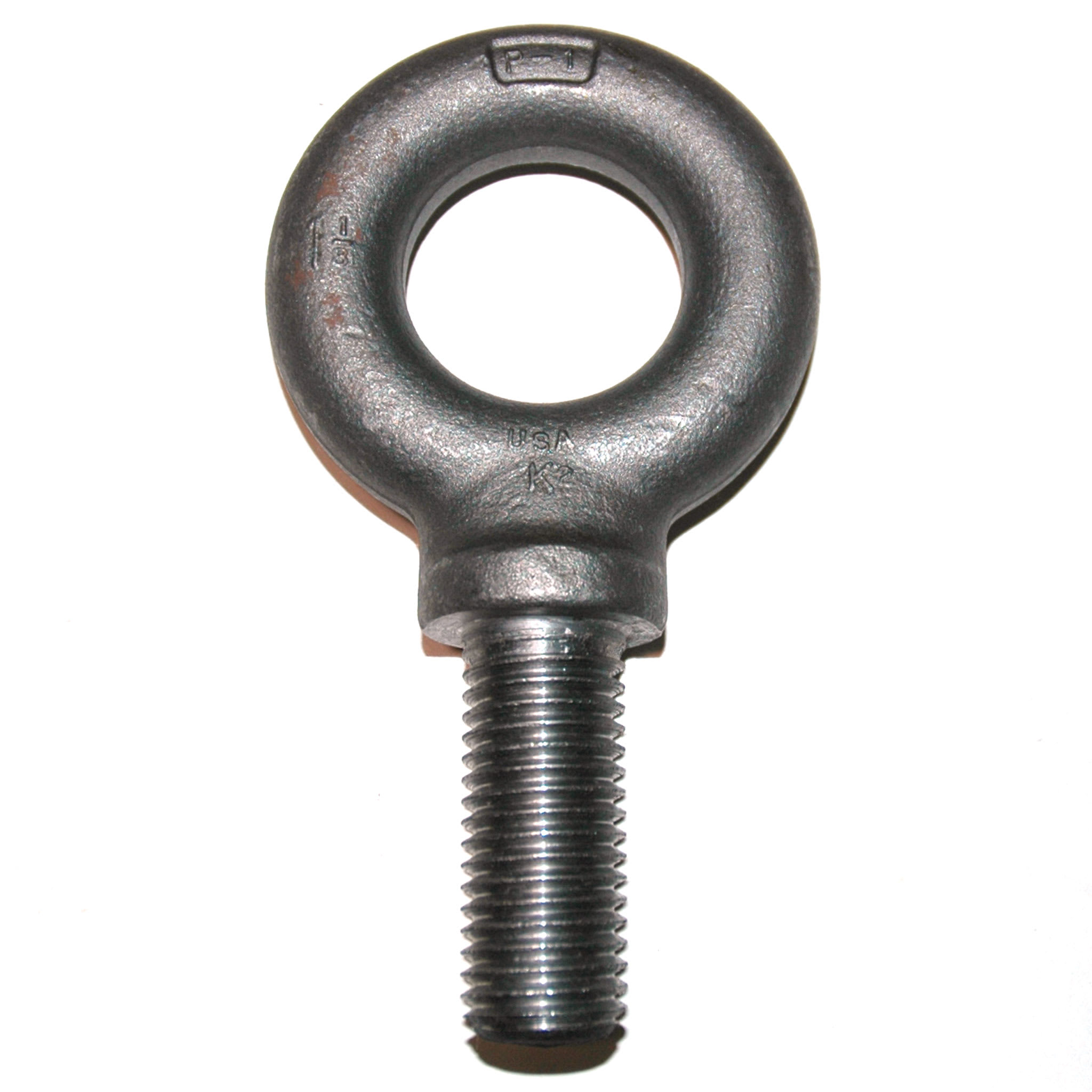 Eyebolt, 12,000 lb. Capacity, Standard, Shouldered, Forged Steel, 1-1/8″-7 Thread Size. ~2-3/4″ Shank Length ~2″ Eye ID ~4″ Eye OD ~C1030 Steel, Heat Treat – Quench And Draw ~65,000 psi Min. Tensile Strength ~30,000 psi Yield
